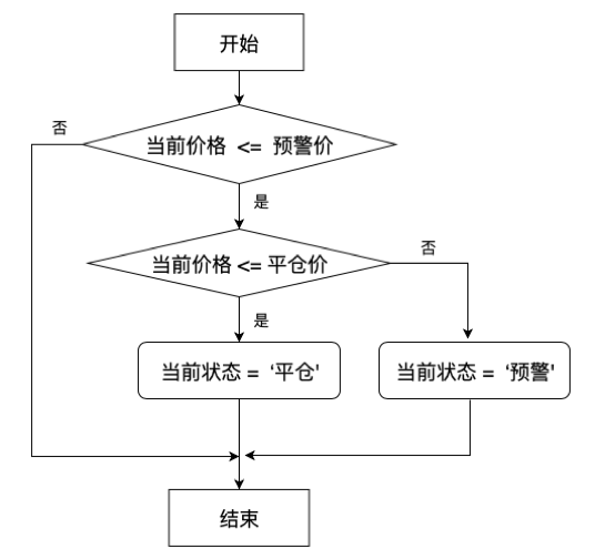 value='=IF(G'+rowS+' <= F'+rowS+', IF(G'+rowS+' <= E'+rowS+', "平仓", "预警"), "")'