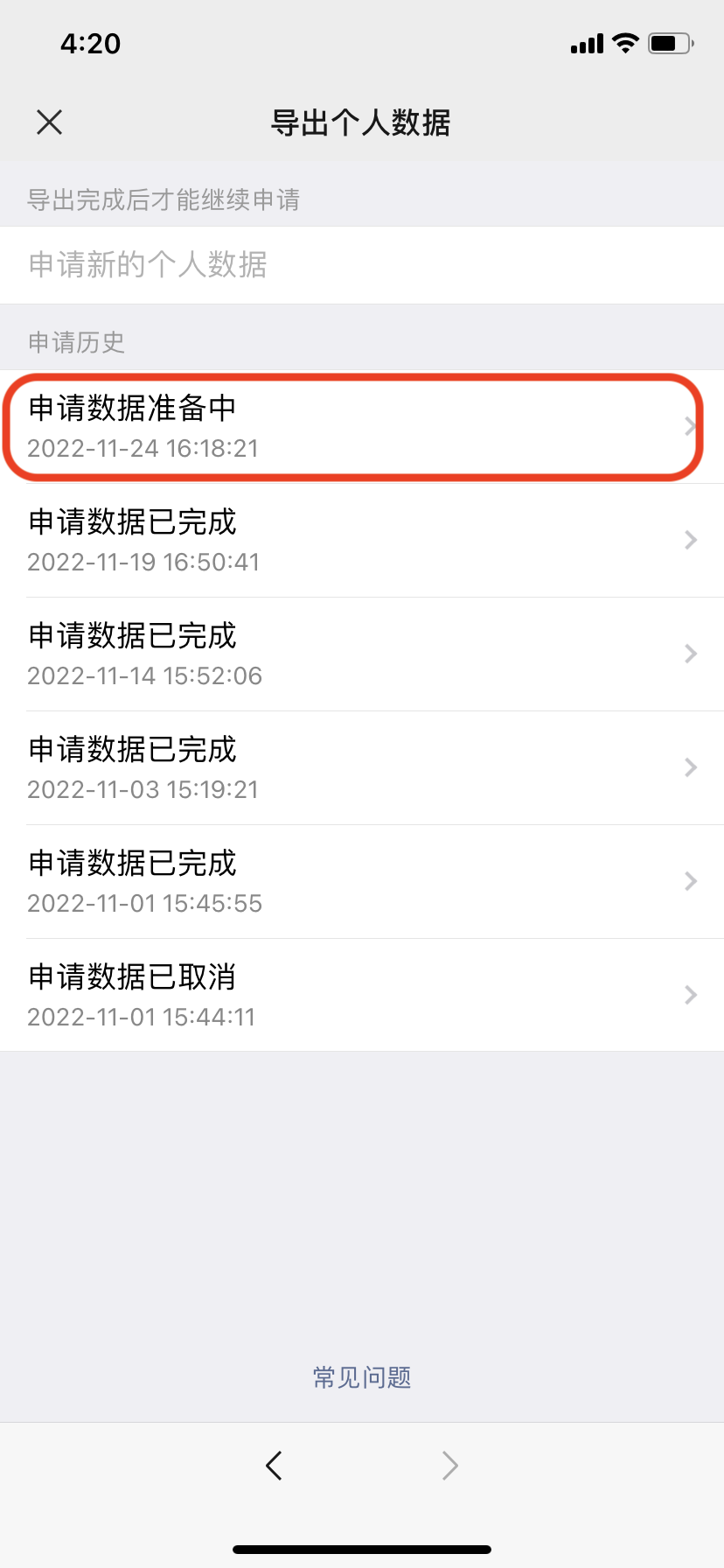 点击“确认”后可以看到导出数据正在准备中……