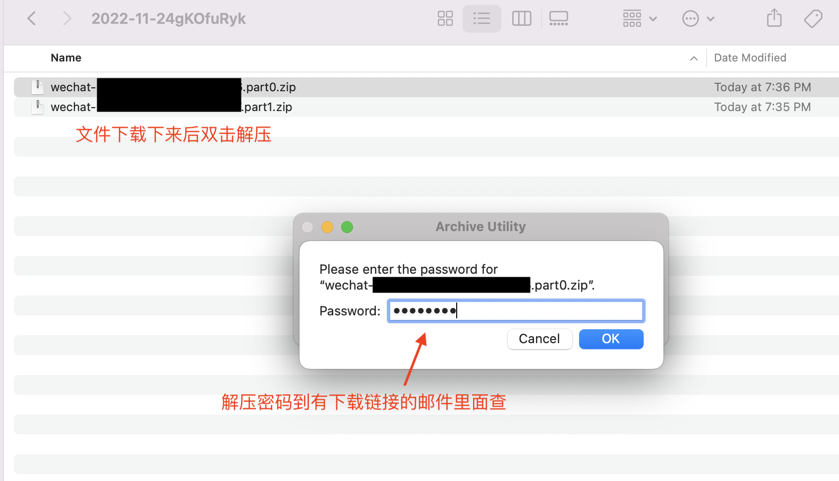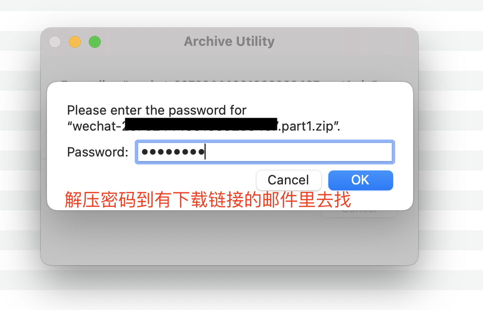 双击下载文件,而后输入解压密码,对压缩文件进行解压缩: