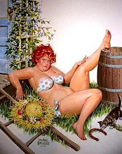 本篇配的是美国西部风情画家杜安(Duane Bryers)笔下的胖妞“希尔达”,跟文字未见得般配,可是我太喜欢希尔达,她太喜幸啦。